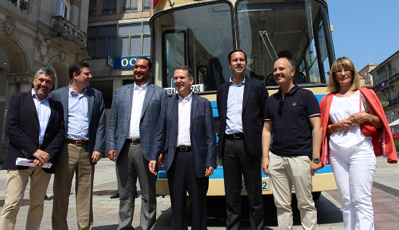 El primer Vitrasa de 1968 recorre las calles de Vigo, España.